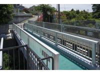 支間10m程度、歩道幅2.0m程度の歩道拡幅に用いる工法で、橋台に取付たブラケットに橋を載せる方式。高欄・舗装などを工場で行うなど現場の手間を省き、一日で架設、即日通行が可能。