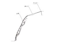 落石発生のおそれがある斜面上の岩石を斜面全体で覆った金網・ワイヤロープ、地山の摩擦力により落石エネルギーを吸収し法尻に岩石を誘導する工法。