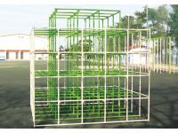 子ども達が活発に動きまわれる9つのユニットをPEステップでジョイントした新しいジャングルジム。
