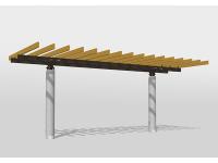 ベーシックパーゴラ 木質樹脂アルミ複合材桟木と擬石柱で耐久性に優れている。