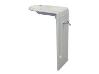 ユニバーサルデザインの水飲み 握りやすい形状と曲面で構成。オリジナルのユニバーサル水栓で使いやすさと安全性を高めている。