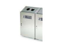 どんな場所にも調和しやすいデザインの屑入れ。分別用サインでより使いやすくなる。