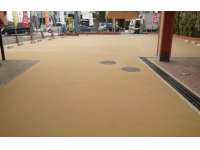 アクリル樹脂などを基材とした常温塗布式のカラー舗装。常温で施工できるため現場で効率よく作業が行える。また、既存の舗装を短時間で色鮮やかにリニューアルすることができる。