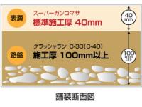 独自の発想と新技術で高強度・高性能化を実現した土舗装材である。 高強度化の実現により、強度を必要とする法面の景観防草対策としての使用が可能になった。