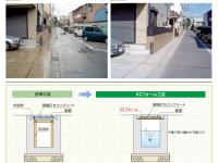 水はね、水たまりの発生を抑制する機能を持たせた切り下げ縁石