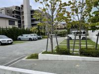 オクトパーク専用の区画線と車止め。