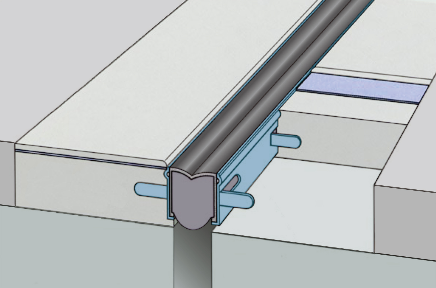 - 舗装厚内に設置可能な突合せ型ゴム製伸縮装置で、既設床版にアンカーを取らず、エポキシ樹脂で接着・一体化する。