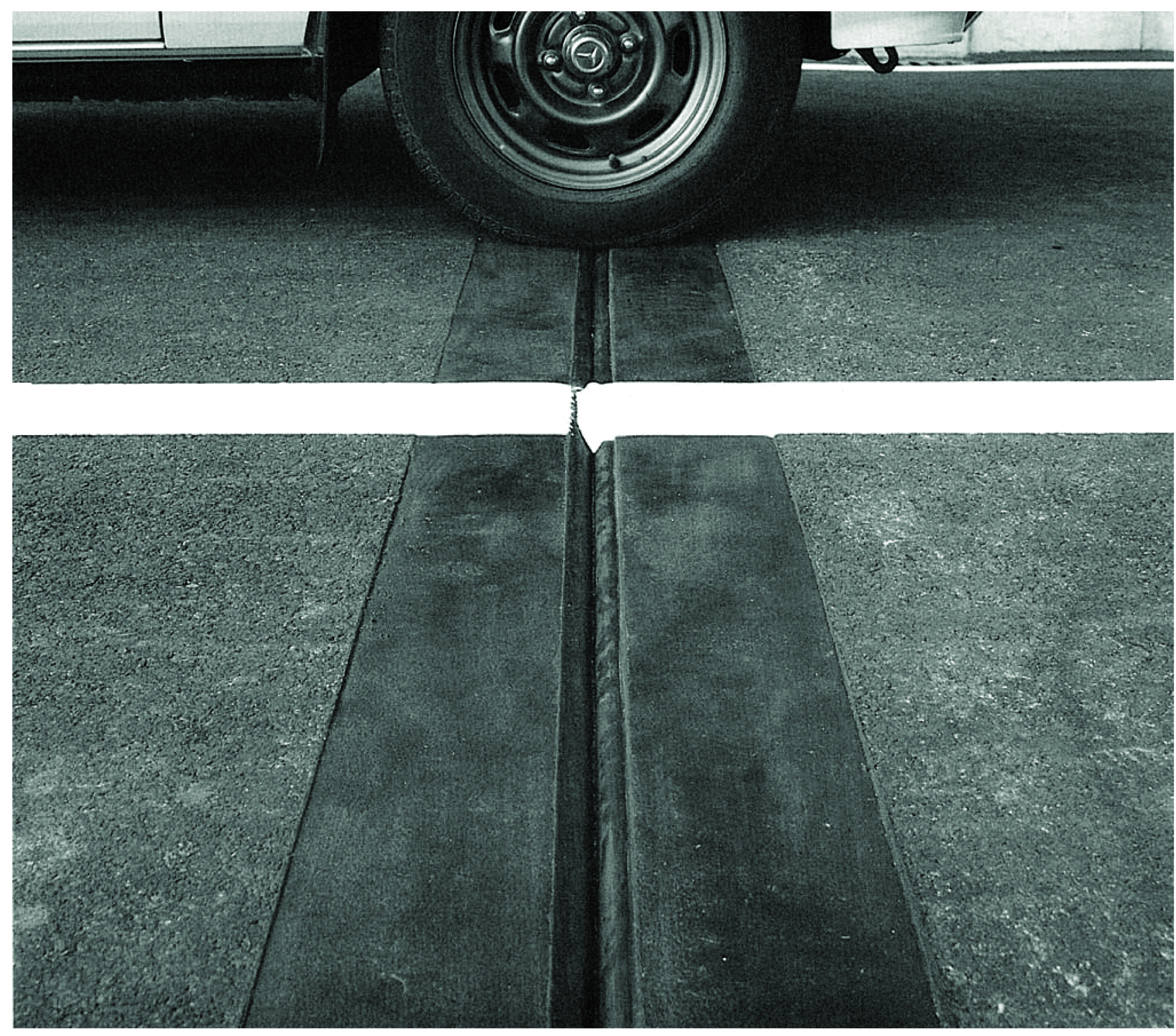 - 舗装厚内に設置される伸縮装置であり、露出部が少なく、騒音は小さい。ゴム製部材の柔軟性により振動も緩和され、周辺環境への影響が少ない。簡素な構造で廃材も少なく、環境負荷の低減に寄与する。
