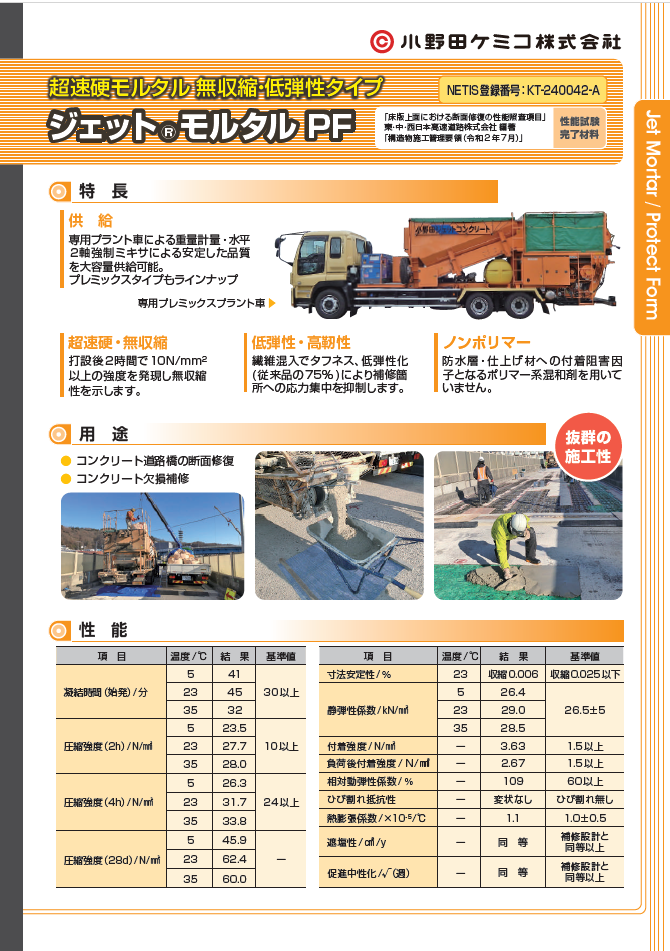 ジェットモルタル低弾性・無収縮タイプ