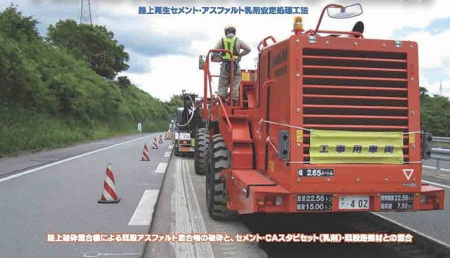 CO2排出量を約15%削減する効果がある。当技術がアスファルト乳剤を用いた常温工法であることに加え、既設舗装の掘削が