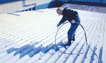 ■天然アスファルト系 鋼板屋根を長期にわたって保護する厚膜型の防食コーティング材。1回塗りで通常の塗膜の約8倍もの厚みで塗り付けることが可能。無機質特殊ファイバーを多く含有させているため、降雨時の衝撃音に対しての消音効果も発揮するだけでなく、伸縮性に富んでおり、気温80℃からー50℃までの環境下でもヒビ割れや剥離を起こすことはない。