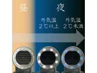 内蔵した温度センサーが筐体周辺の雰囲気温度を測定し、2℃未満になると白色から青色にLEDの発光色を切り替える。視線誘導と同時に、ドライバーに路面凍結注意を促すことができる。