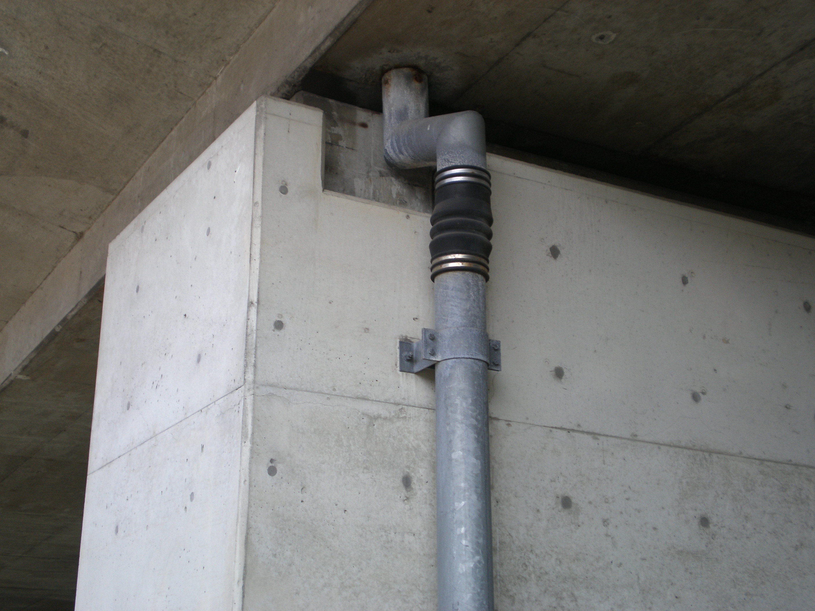 高架道路や橋梁などの排水管に用いるゴム製の継手で、上下鋼管等に直接取り付けられるため、設置が簡単。材料ゴムは耐寒性に優れ、寒冷地から一般温暖地方まで広く適応。取付バンドは防錆性に優れたステンレスを用いており、クローズドタイプの装置になっている。