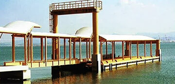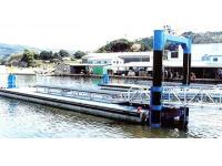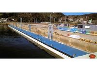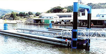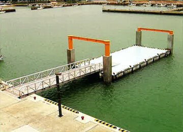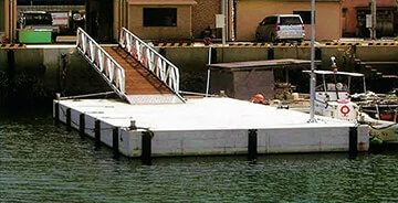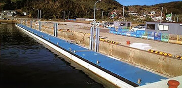 鋼製やFRP製と比べ重量があり、水面下に浮体の1/2以上が没水するため、揺れが少なく安定性にすぐれている。