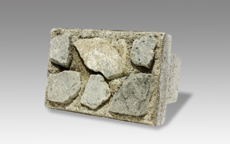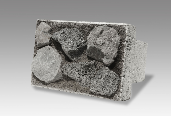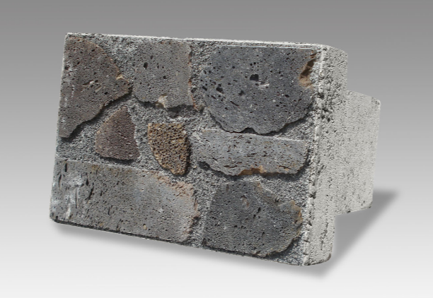 ・面部分が天然溶岩で覆われていてブロック表面にコンクリートが見えにくくなっている。