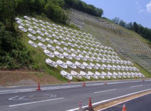 部材相互のはめ込み結合により格子を組み、のり面にアンカーで固定する簡単・経済施工のリサイクルプ...