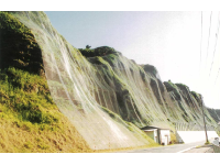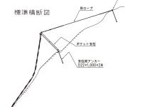 主ロープで連結された4本のアンカーの中心に新たにアンカーを増設することにより各アンカーにかかる負荷を軽減、従来型予防工の2倍の強度を実現した。