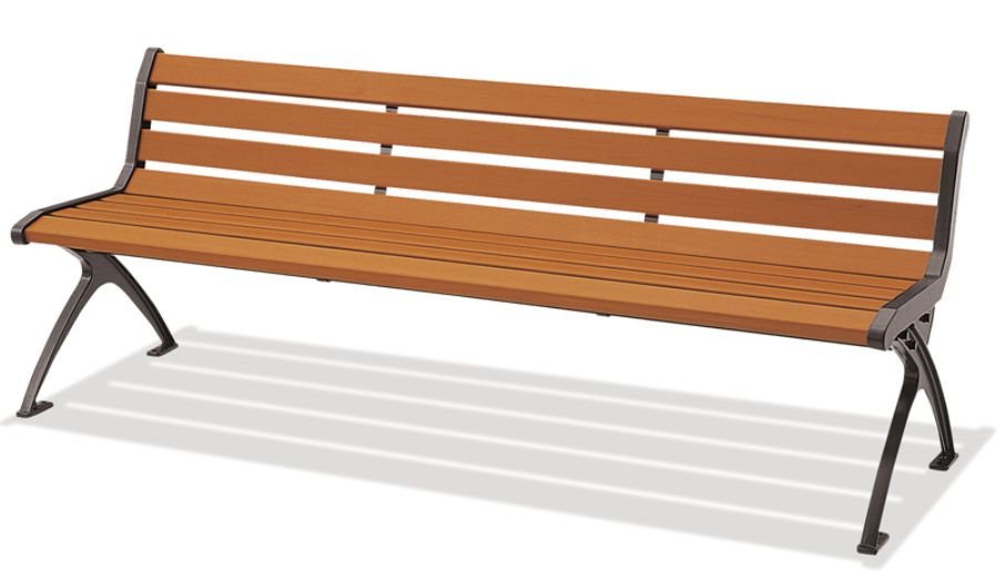 檜材と合成木材の2種類の座板が選択でき、脚部が鋳鉄製のベンチ。