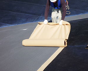 施工に際しては火や接着剤を使用しない常温粘着工法なので施工は安全、無公害であり、大幅な工期短縮が可能。