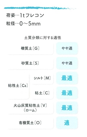 べたついた土や汚泥を即時パラパラとした状態(第4種改良土以上の性状)に改質することができる土壌...