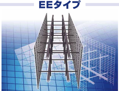 ・Q&Sフレーム工法(EEタイプ)は、フレーム部材(EEフォーム)全体にメッキを施したメッキ鉄線を使い、錆の発生は極めて少なく、耐久性に優れた工法として、Q&Sフレーム工法の一環として開発した工法。