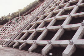 ③フレーム型枠部分は軽量のため、急傾斜地や高所での型枠の組立が容易である。