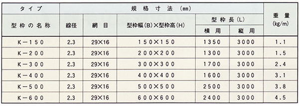 ①フレーム型枠部材は、亜鉛メッキ鉄線によるクリンプ金網を使用している為、