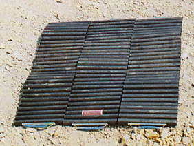 発破の際の岩石飛散から、建造物の破損や人身事故を防止する特殊ポリエチレン製マット。