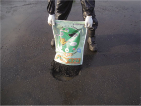 雨天時や水たまり箇所での施工が可能で、寒い時期でもほぐれ易く施工しやすい。