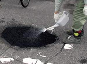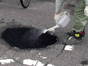 従来の常温合材(揮発硬化タイプ)と比べて耐久性が高く、通常の加熱アスファルト合材と同程度の耐久性を有している。
