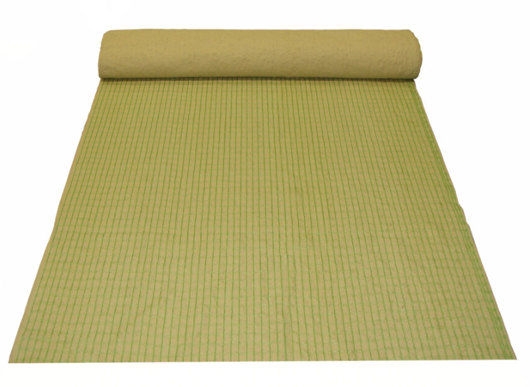 種子・肥料を装着した紙シートをワラコモで被覆した緑化製品。