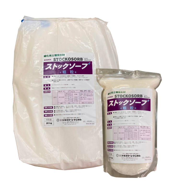 ストックソーブは、土壌専用の高分子吸収(超給水ポリマー)である。