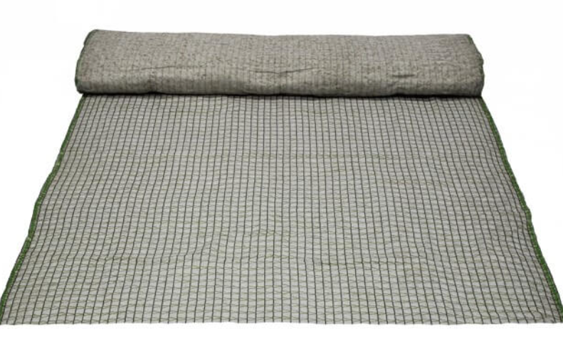 種子・肥料を装着した紙シートをワラコモで被覆した緑化製品。