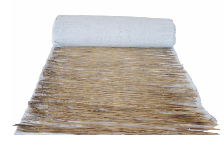 種子・肥料を装着した紙シートをワラコモで被覆した緑化製品。