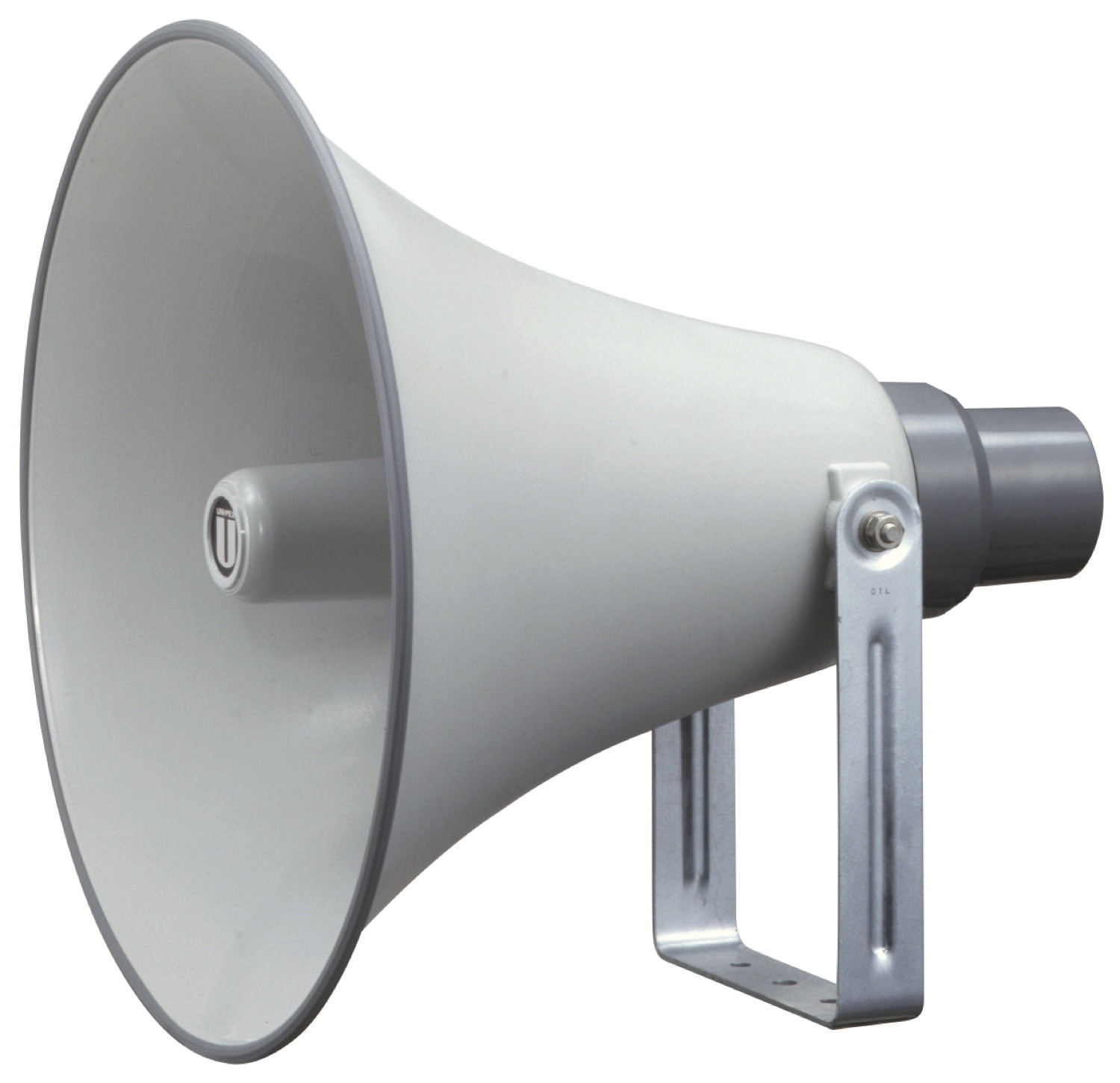 常設用ホーン形スピーカーとして最適な、マッチングトランス内蔵型スピーカー。 電力の損失を防ぐハイインピーダンス配線が簡単に行えるので、アンプとスピーカーの距離がかなり離れている(30m以上)場合や、多数のスピーカーを使用する場合に最適である。 トランス付スピーカーの使用で、能率低下が少なく、効率の高い放送が行える。 ねじ、ボルト類はすべてステンレスを使用し、さびにくくなっている。