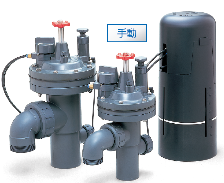 アングル型なので吐出口(マチノ式・竹ノ子)にホース等を接続することにより、畑・ハウス・樹園地等のかん水・散水等に利用できる他、