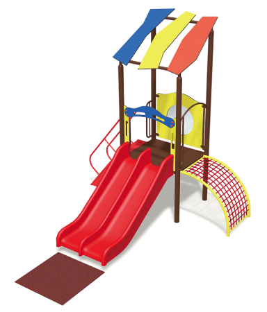たくさんの子どもたちが、楽しみながら体力も増強できるよう、できる限り多くの遊び機能を取り入れたコンビネーション遊具。 幼児・児童の体力測定の結果などから、子どもたちの体力低下(特に握力)を防ぐため、握る・掴むといった動きの遊び機能を必ず遊具に盛り込んでいる。