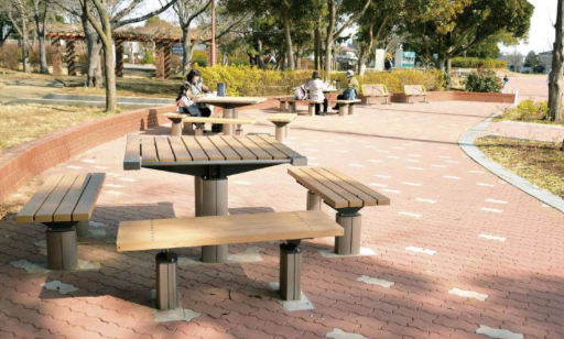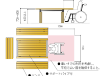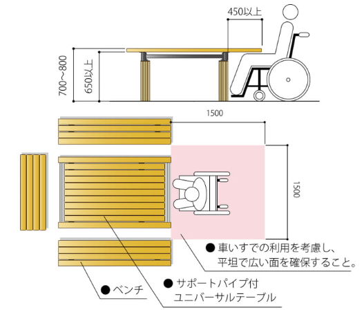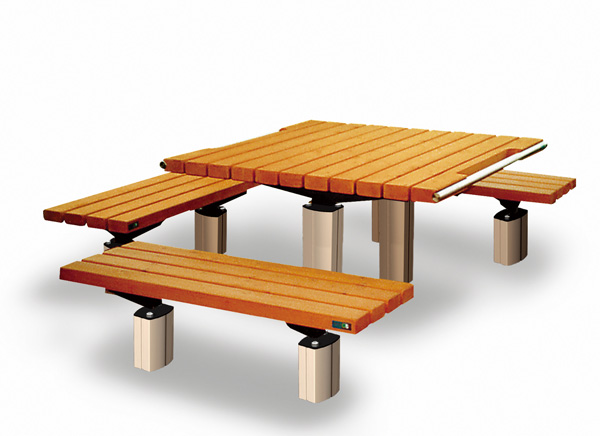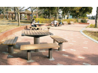 ユニバーサルデザインの野外卓 (テーブルベンチセット) バリアフリー法に準拠している。