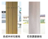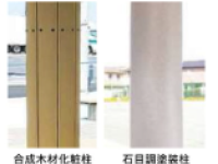 柱は、スチールに木質感のある合成木材を化粧したタイプと御影石の雰囲気を