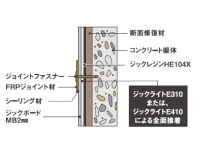 ・ジックボードS工法の目地は、FRP成型品を耐食性シール材で設置して二重構造とし、目地部の損傷を防止する耐久性機能を付与している。