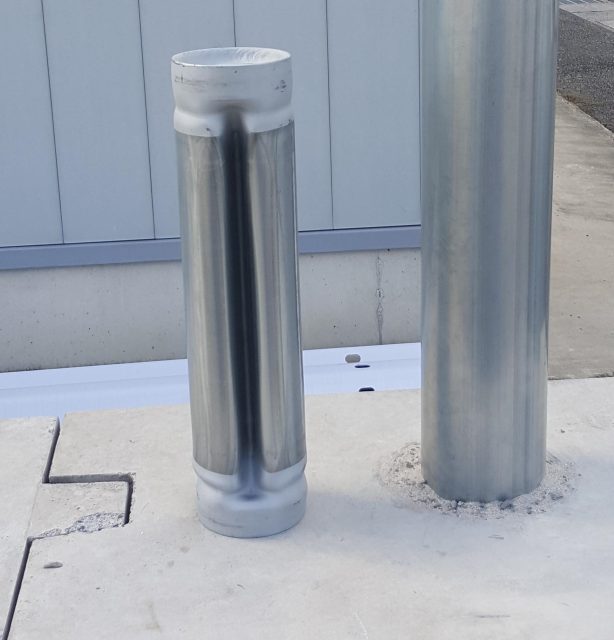 ・ガードレール支柱の地際に発生した腐食部を支柱の内側から補修