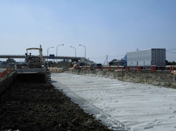 ・脱水作用が瞬時に働き、軟弱土の市場を急速に改善できる。