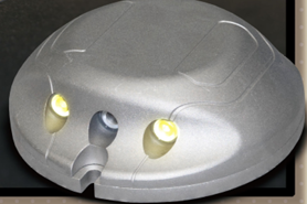 縁石上に設置する自発光式の縁石鋲。高輝度LEDを採用した発光部の点滅(点滅周期:200±20回...