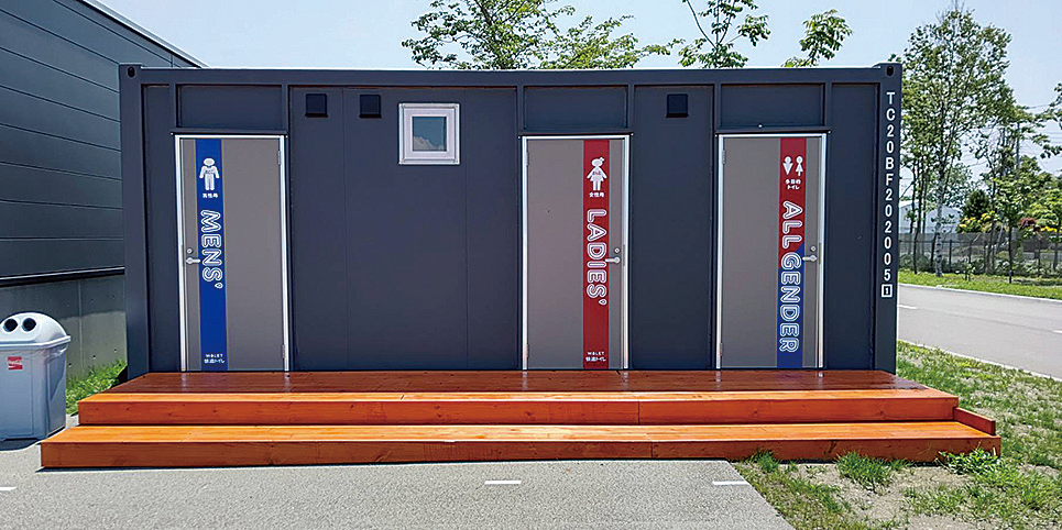 清潔と快適にこだわった移動式トイレユニットで、建設現場用を開発した。4t級のクレーン付きトラッ...