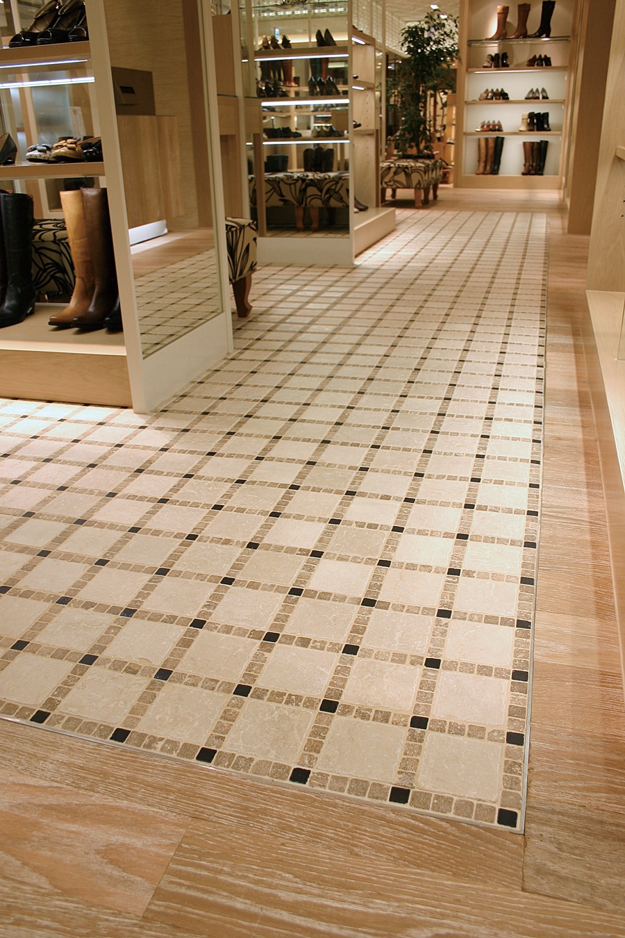 狭い場所にも無理なく施工でき、空間をコンパクトに引き締める効果有り。25角、50角、100角、300角とのコーディネートも可能。