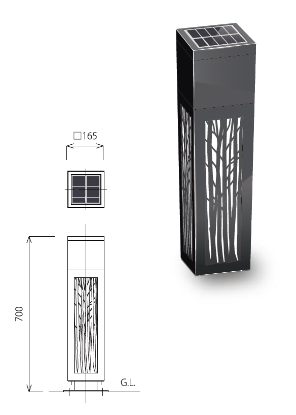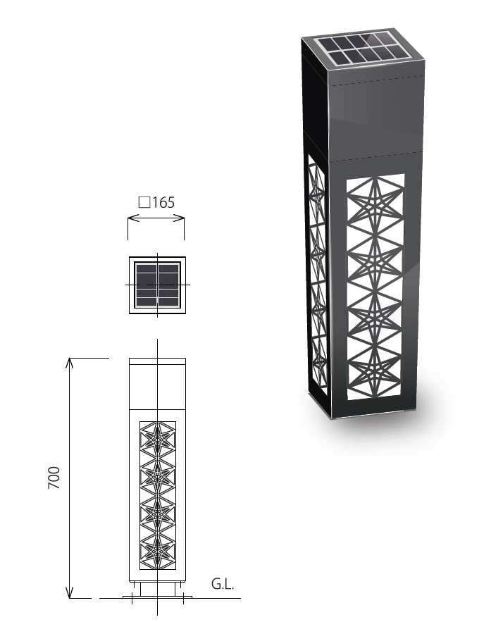 昼間の太陽光により太陽電池が発電を開始、電気エネルギーは電気二重層コンデンサー(キャパシター)に蓄電され、夕暮れになると自動的にLEDが点灯する。電気工事なしで設置することが可能なため工事費や電気使用量の抑制に繋がる仕様である。