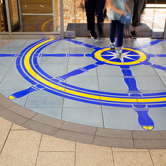 長寿命で高品質な描写が可能な舗装用タイル。インクジェット方式により明瞭な描写でイラストや写真を焼き付けており、1枚から複数枚の組み合わせなど、あらゆるデザインでの作成が可能。ダイヤモンドの次に硬いアルミナをタイル表面へ施すことで耐摩耗性と耐滑り性を高めており、駅や歩道などの超重歩行空間において利用が可能である。