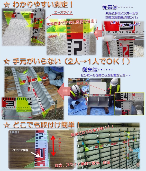 かんたん出来形確認標尺指示具「みえる君」 a-slide