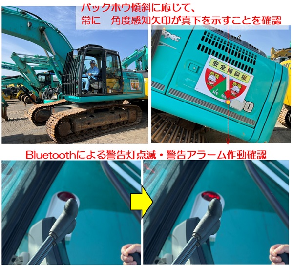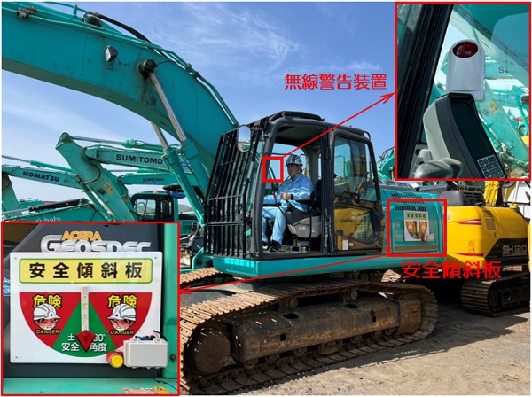 ■車両系建設機械(バックホウ)の登坂作業勾配を現場監視員がリアルタイムで確認できる。