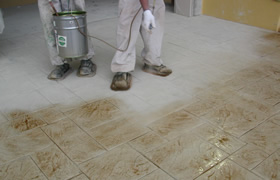 型押しした施工面にリリースオイルXカラーを塗布または噴霧。リリースオイルXカラーが目地部や模様の凹部に流れ込み自然な陰影を醸し出す。
